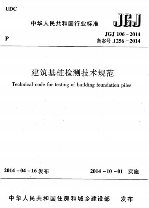 本規(guī)范經(jīng)住房和城鄉(xiāng)建設(shè)部2014年第384號公告批準(zhǔn)、發(fā)布,自2014年10月1日起實(shí)施。原《建筑基樁檢測技術(shù)規(guī)范》 JGJ106-2003同時(shí)廢止。
