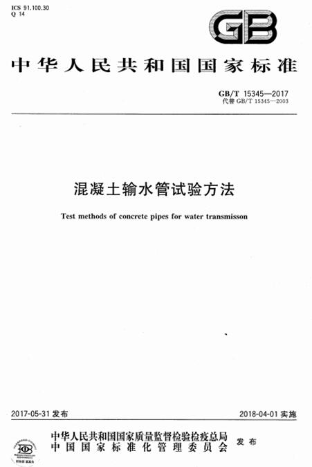 本標(biāo)準(zhǔn)規(guī)定了混凝土輸水管外觀質(zhì)量、幾何尺寸、水壓、外壓荷載、混凝土強(qiáng)度、保護(hù)層砂漿抗壓強(qiáng)度、保護(hù)層砂漿吸水率、管子接頭相對轉(zhuǎn)角等項(xiàng)目的試驗(yàn)方法。