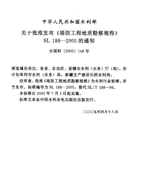 本標(biāo)準(zhǔn)適用于江、河、湖、海的1級(jí)、2級(jí)、3級(jí)堤防、穿堤涵閘、堤岸的工程地質(zhì)勘察江、河、湖、海的4級(jí)、5級(jí)堤防的工程地質(zhì)勘察可參照?qǐng)?zhí)行。