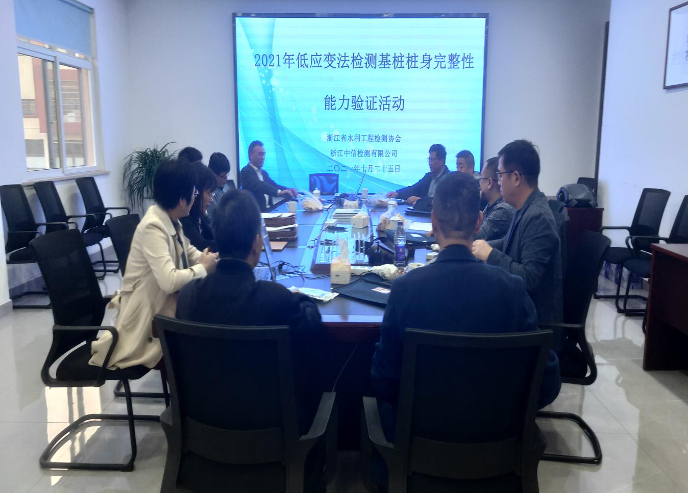 為驗(yàn)證檢測(cè)機(jī)構(gòu)應(yīng)用低應(yīng)變法檢測(cè)樁身完整性的能力,檢驗(yàn)檢測(cè)人員試驗(yàn)操作與報(bào)告編寫(xiě)規(guī)范性、檢測(cè)結(jié)論準(zhǔn)確性,促進(jìn)提高檢測(cè)機(jī)構(gòu)工作質(zhì)量、檢測(cè)能力和管理水平,2021年10月25日,浙江省水利工程檢測(cè)協(xié)會(huì)在衢州組織開(kāi)展了“低應(yīng)變法檢測(cè)基樁樁身完整性比對(duì)試驗(yàn)活動(dòng)”。本次比對(duì)試驗(yàn)活動(dòng)由浙江省水利工程檢測(cè)協(xié)會(huì)主辦、浙江中信檢測(cè)有限公司承辦,37家會(huì)員單位參試,參試檢測(cè)技術(shù)人員74名。浙江省水利工程檢測(cè)協(xié)會(huì)鄭建根會(huì)長(zhǎng)、金皖香秘書(shū)長(zhǎng)蒞臨現(xiàn)場(chǎng)指導(dǎo)工作。